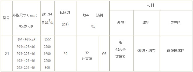 G3級初效過濾器可分為板式初效過濾器和袋式初效過濾器。G3級初效過濾器主要適用于空調(diào)與通風(fēng)系統(tǒng)預(yù)過濾、潔凈室回風(fēng)過濾、局部高效過濾裝置的預(yù)過濾。