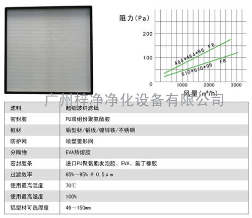 E、過(guò)濾效率:F6:65%@1.0μm、F7:85%@1.0μm、F8:90%@1.0μmH、F9:95%@0.5μm