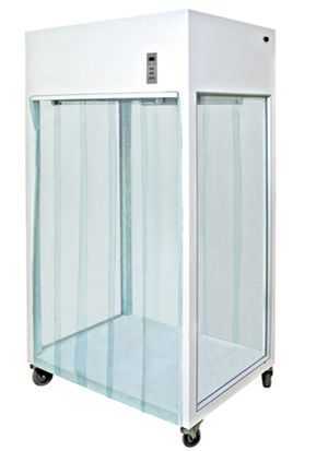 送風(fēng)體內(nèi)裝有超細(xì)玻璃纖維濾料制造的過(guò)濾器,多翼前向式低噪音變速離心風(fēng)機(jī),出風(fēng)面散流板上安裝照明日光燈及紫外線殺菌燈。為了便于工作人員工作和觀察,潔凈工作區(qū)操作面兩側(cè)擋板采用透明玻璃制作,前后擋風(fēng)條為透明環(huán)保材料塑膠。
