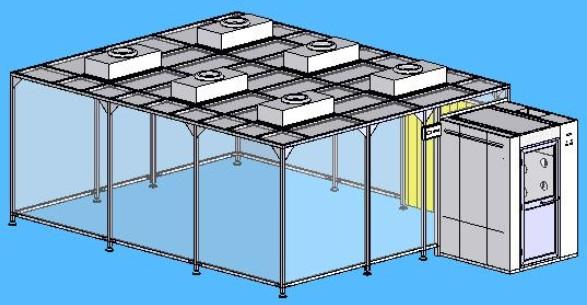 其次,它們所用的材料也不同,潔凈棚一般采用工業(yè)鋁型材作為框架,四周和頂部都安裝有機(jī)玻璃,或者防靜電網(wǎng)格簾,以達(dá)到視覺(jué)通透性??雌饋?lái)就像一座玻璃房子。送風(fēng)部用均采用FFU潔凈送風(fēng)單元。潔凈室就相當(dāng)于把一個(gè)大房間進(jìn)行“豪華裝修”,吊頂采用泡沫彩鋼或是巖棉板,有獨(dú)立的空調(diào)送風(fēng)系統(tǒng),空氣經(jīng)過(guò)初中高效三級(jí)過(guò)濾,人員及物料配有風(fēng)淋室及傳遞窗潔凈過(guò)濾。