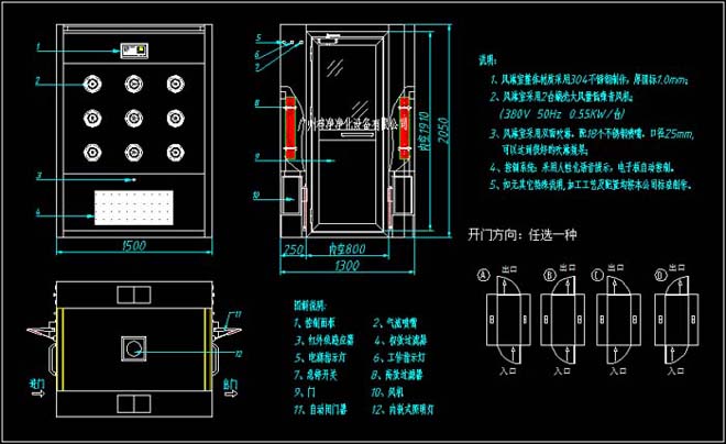 風淋室電子互鎖、配優(yōu)質閉門器;