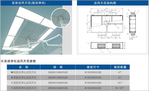 層流天花結(jié)構(gòu)的合理性直接影響到手術(shù)室的送風(fēng)效果,凈化級(jí)別、垂直送風(fēng)模式;