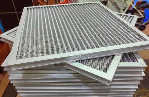 1、過濾器由不同規(guī)格的波折鋁網(wǎng)組成,交錯放置于內(nèi)框中;