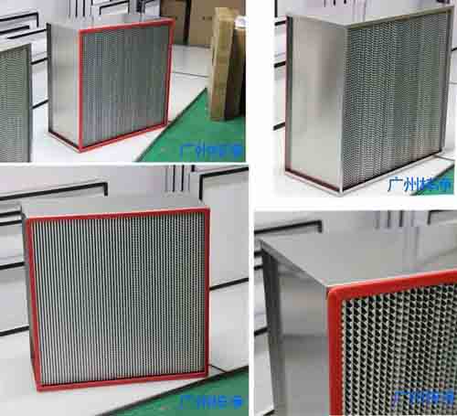 高效耐高溫過濾器使用隔板式設計,波紋形隔板可以精確地保持褶層間距,在最小阻力下,最大限度地利用濾料。過濾器濾材兩面180褶翻折形成鍥形褶層,濾料折彎時有兩道壓痕,使其在隔板的尾端開成鍥形盒式褶層,鍥形盒式褶層可以防止濾料破損。