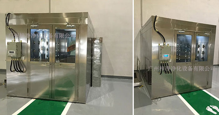 防爆風(fēng)淋室是人/貨進(jìn)入潔凈室所必需的通道,為了減少由于人/貨進(jìn)出帶來的大量塵埃粒子,在潔凈室的入口處安裝功能齊全的“氣閘室”可以減少空氣污染微粒的數(shù)量,當(dāng)人/貨通過風(fēng)淋室時(shí),污染微粒被經(jīng)過高效過濾的高度潔凈空氣射掉,25m/s以上的高風(fēng)速確保了有效的噴射和飄移微粒經(jīng)過初效過濾器和高效過濾器兩級(jí)過濾基本過濾掉。