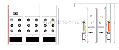 5、全自動紅外感應(yīng)吹淋,進口紅外感應(yīng)器,正泰中間繼電器,軟鍵觸按式時間繼電器,顯示及設(shè)置吹淋時間,范圍在0-99s可調(diào),吹淋時雙門自動鎖閉;平常只能打開其中一扇門,