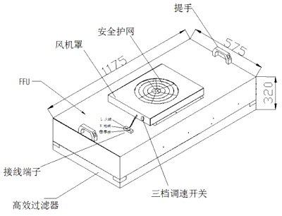 FFU凈化單元是一種自帶動力、具有過濾功效的模塊化的末端送風裝置。風機從FU頂部將空氣吸入并經HEPA過濾,過濾后的潔凈空氣在整個出風面以0.45m/s±20%的風速均勻送出。